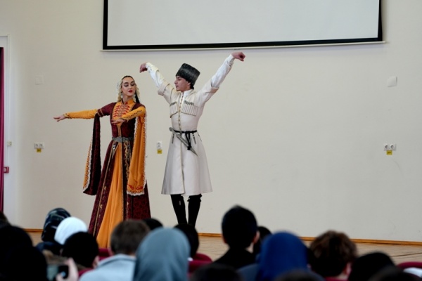 Сегодня в гимназии им. М. Горького состоялся яркий и запоминающийся концерт ансамбля «Танца народов Кавказа». Вначале мероприятия специалист по антитеррористической безопасности Хангереев Ш А. провел беседу с учащимися школ по разъяснению вреда экстремизма. Далее артисты ансамбля выступили с концертной программой в которую вошли разнообразные хореографические композиции, среди которых особенно выделялись «Приветственная лезгинка», «Дженнет преси», «Гойчу», «На крыльях молодости» и другие. Музыкальное сопровождение концерта обеспечил талантливый музыкант ансамбля З. Нагиев, который виртуозно исполнил несколько композиций на скрипке. Особое внимание зрителей привлекли выступления заслуженной артистки Республики Дагестан З. Сатуевой и Р. Аслановой, исполнивших песни на национальных языках, что придало мероприятию особую атмосферу и глубину. Концерт стал настоящим праздником культуры и искусства, подарившим гостям незабываемые впечатления.