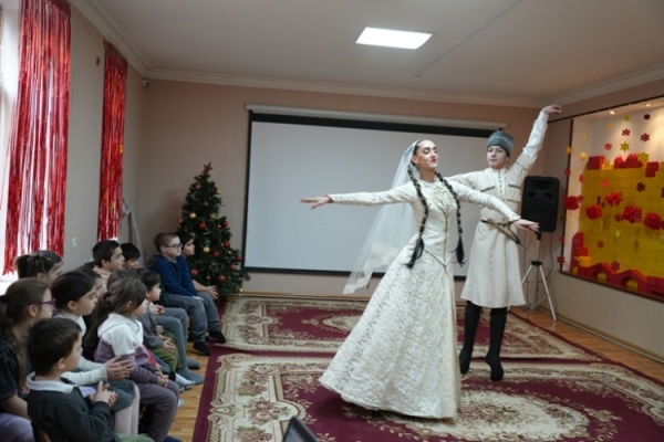 Сегодня Государственный ансамбль танца народов Кавказа «Молодость Дагестана» принял участие в предновогоднем благотворительном концерте, организованном КЦСОН Хасавюртовского района для детей участников специальной военной операции. Артисты ансамбля представили яркую и эмоциональную хореографическую композицию под названием «Гойчу», которая вызвала тёплый отклик у зрителей и создала праздничное настроение. Мероприятие прошло в тёплой и душевной атмосфере, подарив детям радость и поддержку в преддверии Нового года.