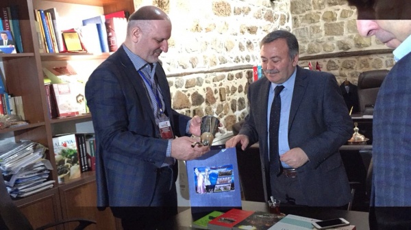 " ["content"]=> string(1382) "В мэрии города Кахраман-Мараш состоялась встреча заместителя мэра города Севдет Кабакшы с делегацией из Дагестана в лице директором ГБУ государственного ансамбля танца народов Кавказа «Молодость Дагестана» Хангереевым А.З.. На встрече обе стороны обменялись памятными подарками. Коллектив ансамбля выступит с сольными концертами в городах Республики Турция.